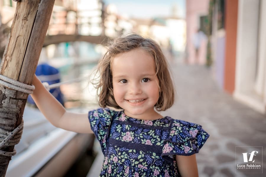 Per questo servizio fotografico abbiamo optato per la meravigliosa e colorata Burano, dove ho ambientato numerosi servizi fotografici di coppia, ma dove non avevo finora avuto l’occasione di fotografare una famiglia e credo si presti molto a questo scopo perchè le case variopinte, i ponti, i piccoli canali, le barche, mettono decisamente allegria ai bambini.